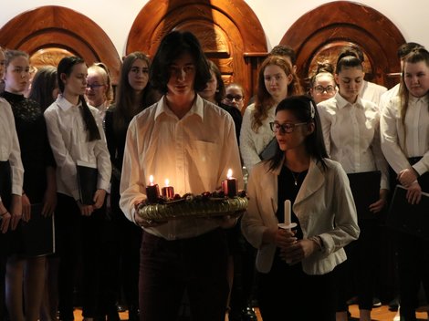 Összegyűltünk, felnőttek és gyerekek egyaránt és meghallgathattuk a hetek óta szorgosan készülő kollégisták előadását. A csodaszép énekeket még hangulatosabbá tették bartókos lakosaink, akik meseszép zenei aláfestést varázsoltak. A terem félhomályában megcsillanó gyertyák is fokozták a kellemes adventi hangulatot. Felkészülésüket szívvel-lélekkel vezette és támogatta Makrai Judit és Szabó Péterné Andrea tanárnő. Nekik köszönhetően meghitten tölthettük ezt az estét.