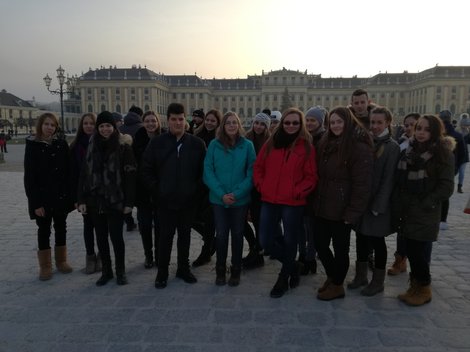 2016. december 17-én iskolánkból 26 diák és három kísérő tanár Bécsbe utazott. A Schönbrunni kastély bejárása után rövid sétát tettünk Bécs belvárosában, és jutott idő a Városháza előtti karácsonyi forgatag megtekintésére is.