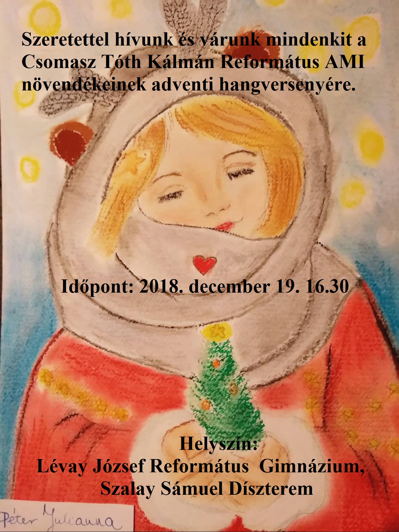 Szeretettel hívunk és várunk mindenkit a Csomasz Tóth Kálmán Református AMI növendékeinek adventi hangversenyére.