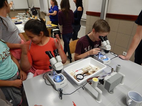 Változatos feladatokat kínáltak a biológus kollégák: csontváz modell összerakása, mikroszkópos vizsgálatok, élelmiszer vizsgálatok. Kigyókeltetés, lángfestés és társaik színesítették a kémia részleget. Mágneses és elektrosztatikus terekkel, termogenerátorral és napelemmel dolgozhattak a fizika iránt érdeklődők. Vizsgálhattak hőtani jelenségeket és lézerinterferenciát.