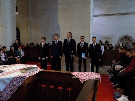 Az esemény a reggeli istentisztelettel volt egybekötve,ahol a kollégista diákok verssel: Petőfi Sándor:Fekete-piros dal,Tompa Mihály: A gólyához(részlet), és énekekkel: Ha kimegyek a vajdavári tetőre, Nem hitted, hogy katona leszek én…készültek diáktársaiknak.